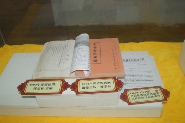 图为郭厝文化展示馆的郭氏族谱及惠安县人民政府文件。
