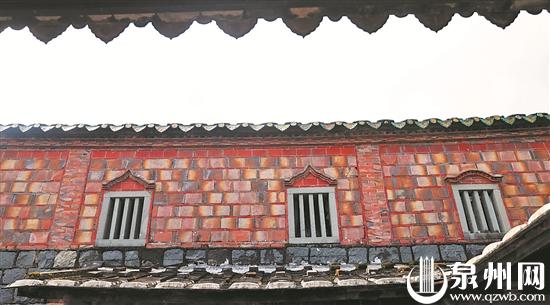 过溪大厝大量使用红砖红瓦,整体建筑色调浓烈。