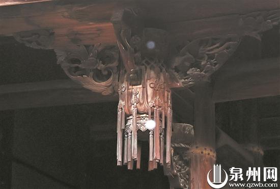 金瓜柱瓜脚形似鸭掌,牢牢抓住梁架,瓜脚上浮雕蝙蝠。