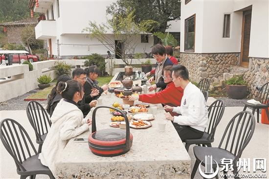 肖友宗表示,2016年,山有文旅通过佛岭村委会租下福美堂,将其打造成山有福美民宿。而今,在人们精心的修缮下,福美堂这座老宅褪净尘埃,拥有了现代风情,也焕发出新的生机。“山有福美民宿已成为‘网红’民宿,这里还是爱国华侨叶迺矧的故居,很多游人为此慕名前来‘打卡’参观。”老宅重焕光彩,也给当地民众带来好处。以往佛岭村村民大多外出谋生,村里只剩下一些留守老人和学龄前的儿童,平时冷冷清清的。现在有了福美堂等“网红”点,游客增加了,村子的人气一下就起来了。村民们卖点土特产或到民宿工作,也能增加一些收入,“美在山水,甜在人心。这是人们如今来福美堂最直接的感受了。”