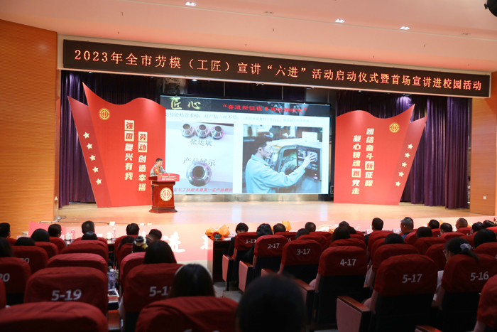 首场宣讲进校园活动,分为“劳动创造幸福”“匠心传承践初心”“砥砺前行向未来”“强国复兴有我”四个篇章,以“学习心得分享+奋斗故事讲述+现场问答互动+劳模寄语青年”的形式,为青年学子们送上了一堂丰盛的理论知识、人生奋斗指引的“劳动课”“思政课”,凝聚强国建设、民族复兴的青春力量。