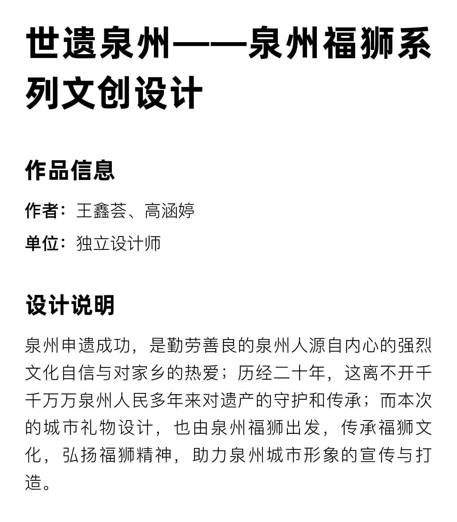 2023-04-07 16:45:28 来源:“世遗泉州”城市礼物、“福狮”文创设计大赛组委会