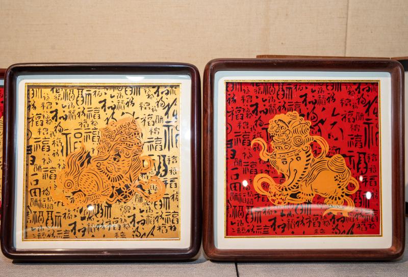 来自陈金矿设计的作品《“百福纳狮 世遗献礼”剪纸系列作品》
