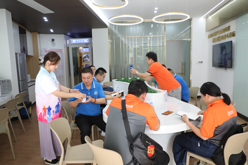 揭牌仪式现场还聘任部分快递外卖员代表为社区兼职网格员,发挥新就业群体走街串巷的优势,引导其积极参与社会基层治理。开展“夏送清凉”活动,为新就业群体代表送上防暑降温物品。