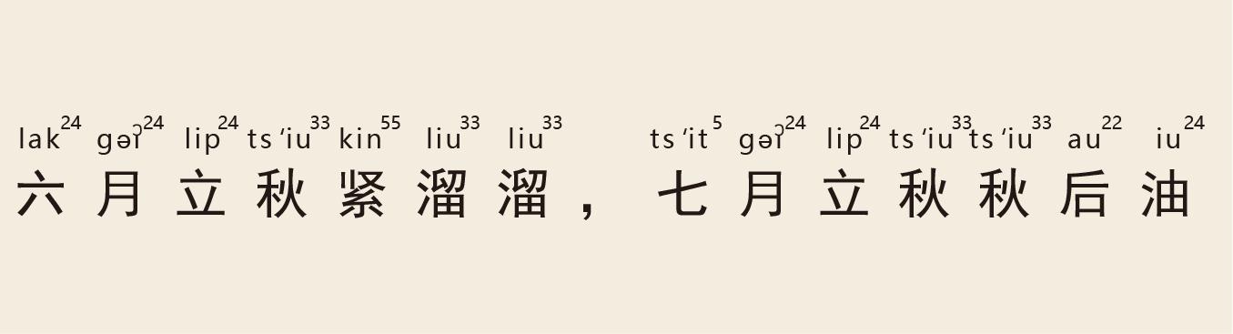 译:农历六月立秋,夏季过得很快,气候凉爽;七月立秋,则气候炎热,热得人冒油。