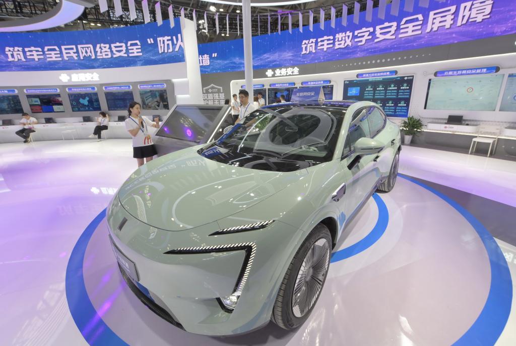 2023年国家网络安全宣传周网络安全博览会现场展示的智能网联汽车(9月11日摄)。新华社记者林善传 摄