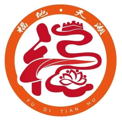 “福地天湖”LOGO创作构思:紧扣主题,整体上以“福”字为基础进行创作;以“天湖福地”为寓意,反其意用之;右上角为“天湖烟墩”置顶,也形似王冠;中间以高铁动车的形状,表示动车穿境而过,并组合成“礻”字旁;右边整条授带构成一条龙,为“福”字右半边的写意笔法,也寓意天湖为“龙兴之地”;右下角的图案为莲花状,代表天湖寺,右下角莲花,同时又是几个人的组合,前仆后继,即代表齐心协力耕耘家园,又寓意人们在舞龙,即展示天湖村的“游板龙灯”文化。