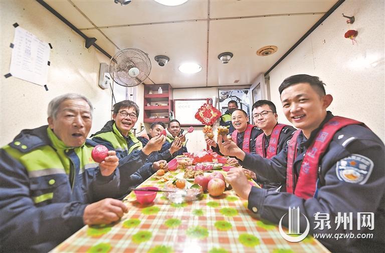 春节临近,游子思归。首次靠泊泉州肖厝口岸的中国台湾籍“全富”轮洋溢着欢庆祥和的气息,船员们即将返回家乡与亲人团聚。1月30日上午,肖厝出入境边防检查站执勤一队民警们带着新春的祝福登上货轮,和船员们一起写春联、贴春联、挂灯笼、话家常、品小吃。