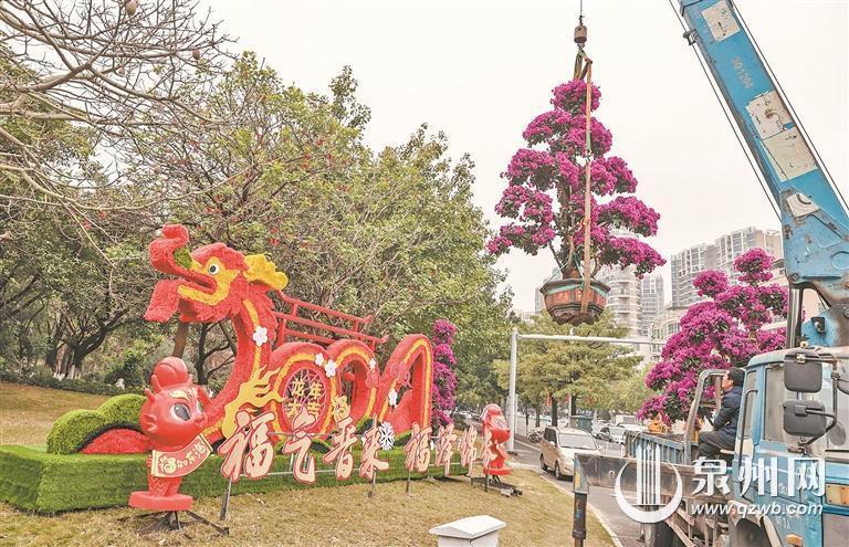随着龙年春节临近,晋江大街小巷的节日氛围日益浓厚。晋江市林业和园林绿化局围绕“福暖四季 福佑绵长”和“龙年福见”两大主题,在晋江市区主要道路、重要节点、公园广场的绿化带上设置18处景观小品,着力营造喜庆祥和的节日氛围。