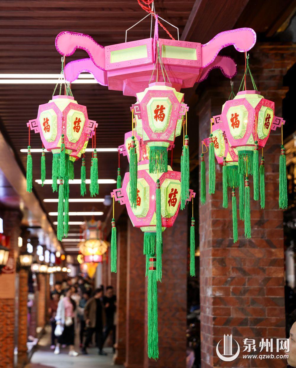 赏花灯是泉州闹元宵习俗的重要组成部分,在泉州方言中,灯与“丁”谐音,因此元宵节的花灯寄托着人们多子多福、阖家欢乐的美好祝愿。根据制作工艺的特点,泉州花灯可以分为彩扎灯、刻纸灯、针刺灯三类。