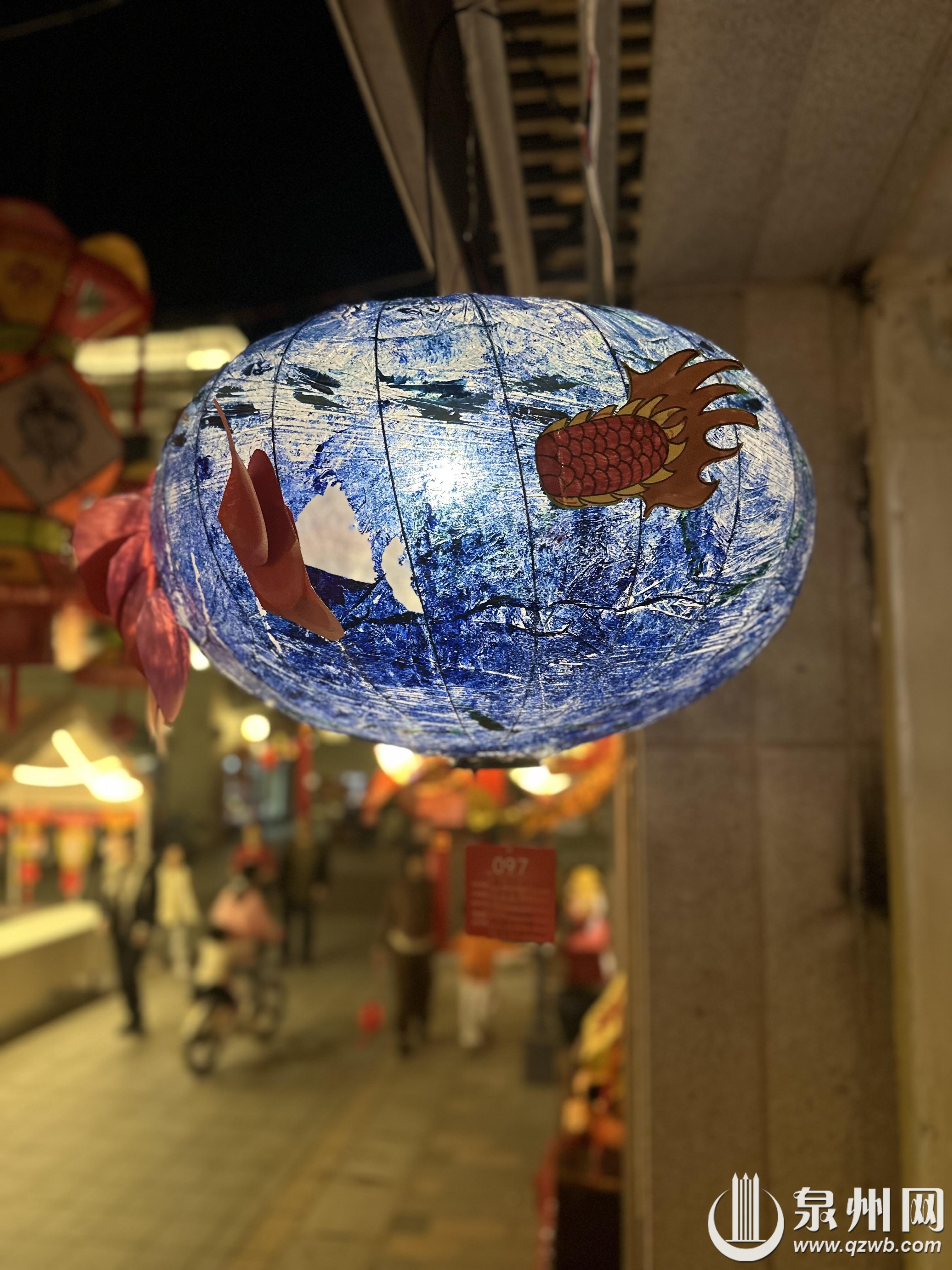 元宵期间,南少林文武坊展出了丰泽辖区内幼儿园、小学制作的世遗泉州龙年主题花灯及其他特色花灯600盏。从头戴簪花的龙形花灯,到左手持渔网右手拿箩筐的惠安女座灯,再到象征年年有余好运来临的锦鲤灯,无一不展示了学生们天马行空的想象力。学生们在传统的元宵花灯中加入当下流行的簪花、福船、“十龙九子”艺术装置等泉州元素。除了传统花灯中使用的各色布料、彩纸、流苏等材料,现场不少花灯利用生活中常见的泡沫、钢丝球、箩筐等物品,加以巧思,绘上彩画,摇身一变成为一盏盏独具特色的精美花灯。