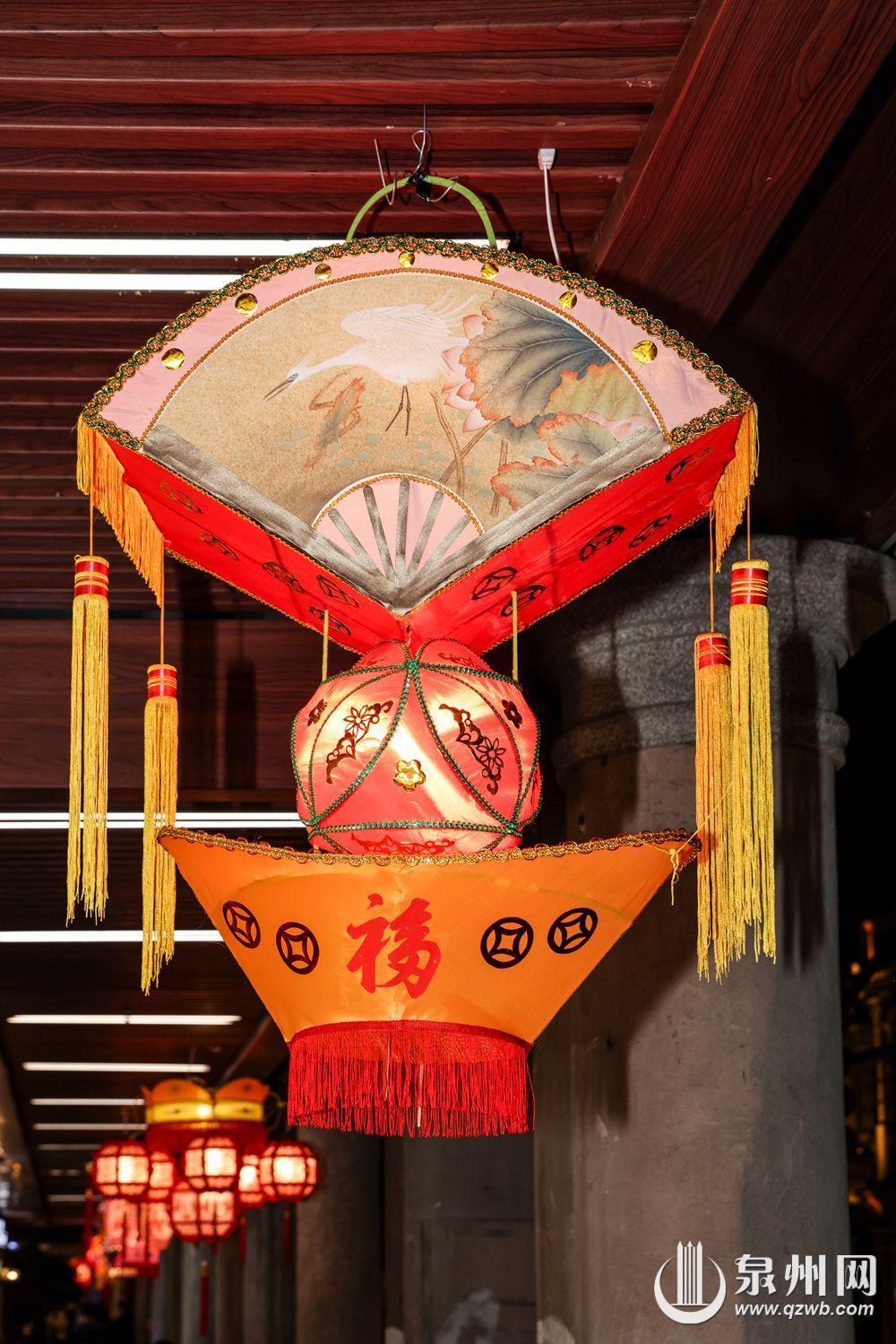赏花灯是泉州闹元宵习俗的重要组成部分,在泉州方言中,灯与“丁”谐音,因此元宵节的花灯寄托着人们多子多福、阖家欢乐的美好祝愿。根据制作工艺的特点,泉州花灯可以分为彩扎灯、刻纸灯、针刺灯三类。