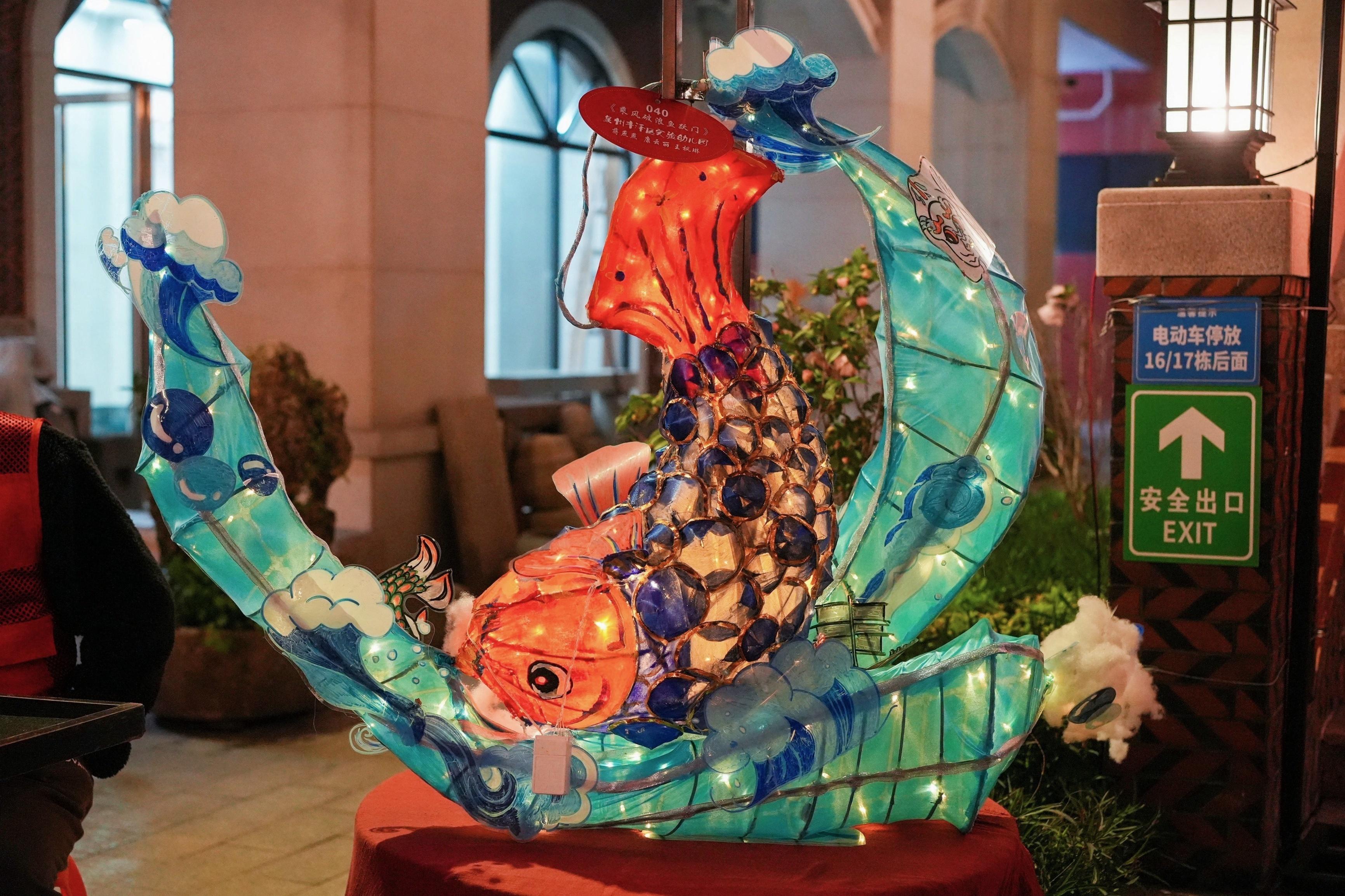元宵期间,南少林文武坊展出了丰泽辖区内幼儿园、小学制作的世遗泉州龙年主题花灯及其他特色花灯600盏。从头戴簪花的龙形花灯,到左手持渔网右手拿箩筐的惠安女座灯,再到象征年年有余好运来临的锦鲤灯,无一不展示了学生们天马行空的想象力。学生们在传统的元宵花灯中加入当下流行的簪花、福船、“十龙九子”艺术装置等泉州元素。除了传统花灯中使用的各色布料、彩纸、流苏等材料,现场不少花灯利用生活中常见的泡沫、钢丝球、箩筐等物品,加以巧思,绘上彩画,摇身一变成为一盏盏独具特色的精美花灯。