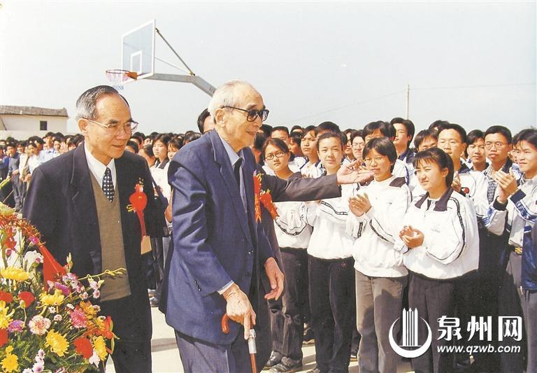 2000年,黎明职业大学丰泽校区第一期工程举办竣工庆祝仪式,年过九旬的梁披云老先生拄着拐杖到校志贺。 (黎大 供图)
