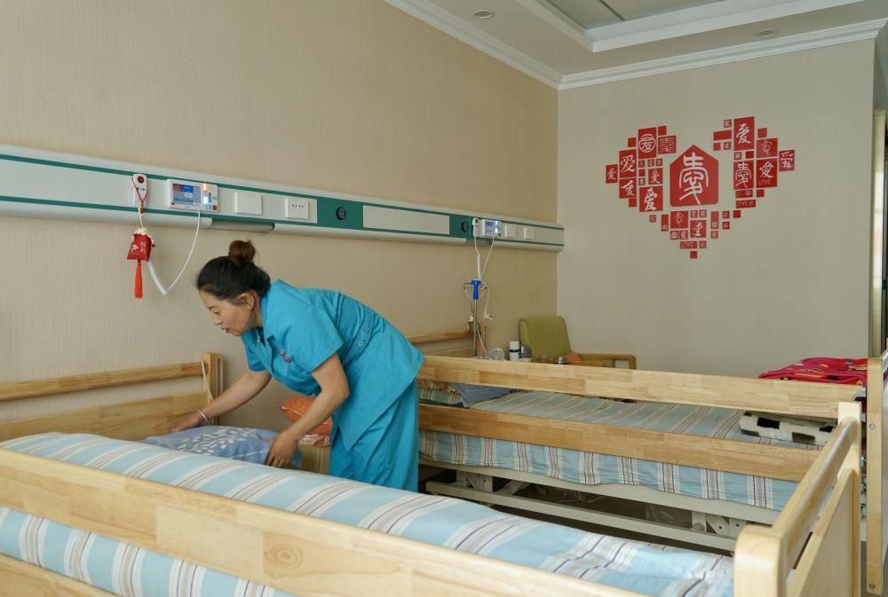 7月7日,在通海路街道综合养老服务中心,护理员在打扫房间卫生。新华社记者 张子琪 摄