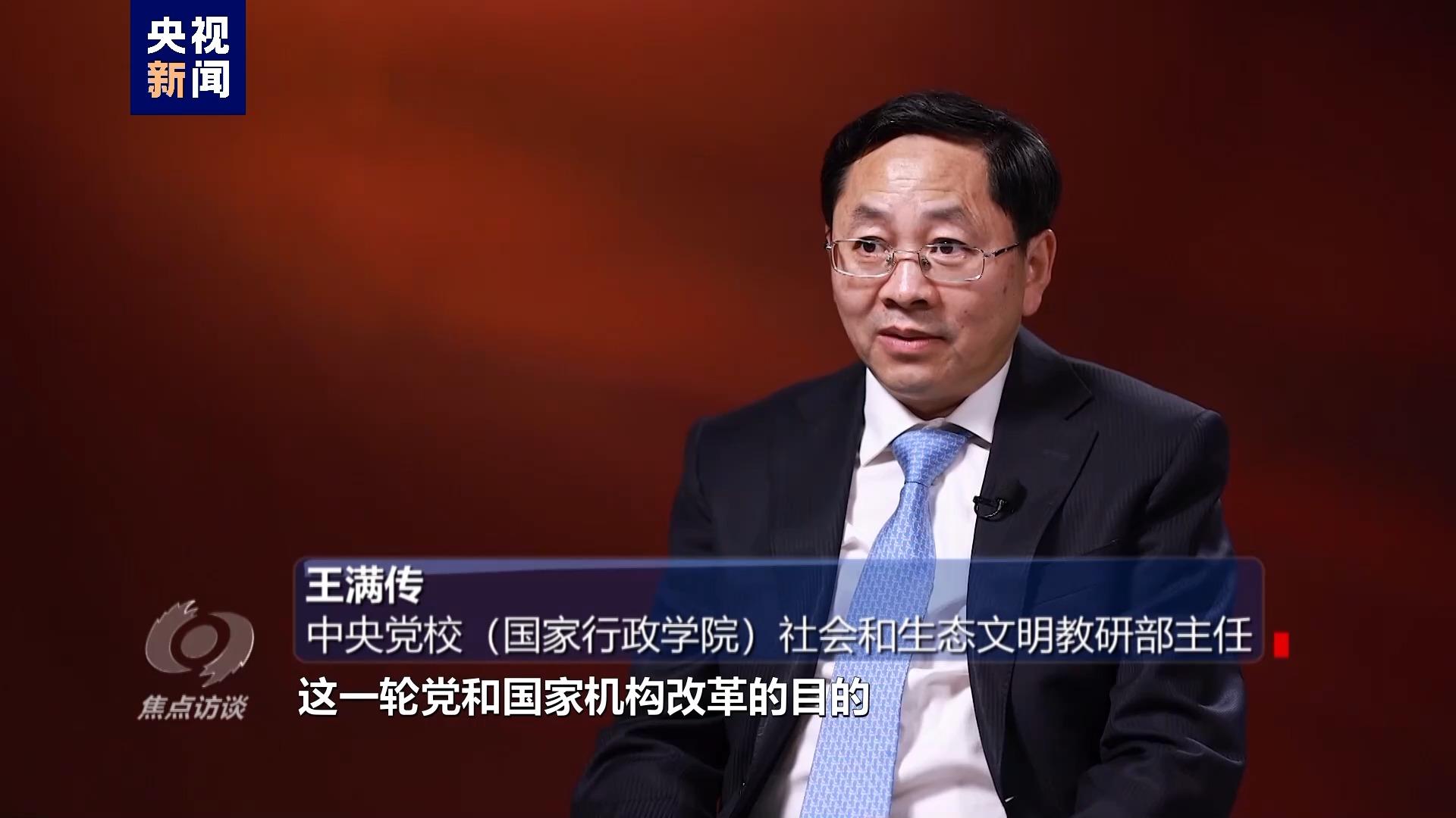 中央党校(国家行政学院)社会和生态文明教研部主任 王满传:通过这一系列重要的举措,达到了习近平总书记提出的这一轮党和国家机构改革的目的。就是推动党对社会主义现代化建设的领导,在机构设置上更加科学、在职能配置上更加优化、在管理运行上更加高效。