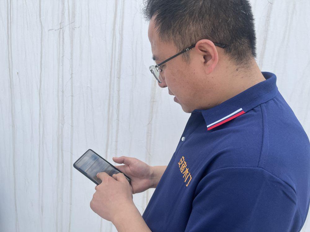 万林科的儿子万义飞在手机上查询用水量和缴费情况。新华社记者 任玮 摄