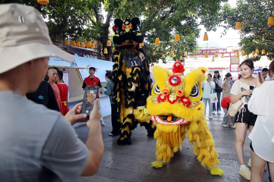 活动在黎明职业大学舞龙舞狮队的表演中拉开了序幕,祥龙瑞狮在学生们的操作下活灵活现,随着音乐的鼓点节奏翻腾跳跃、威风凛凛,吸引了不少市民游客走进活动现场,争相互动拍照。
