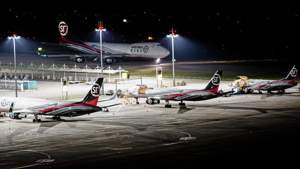 2024年6月2日凌晨拍摄的鄂州花湖国际机场停机坪一角。新华社记者 肖艺九 摄