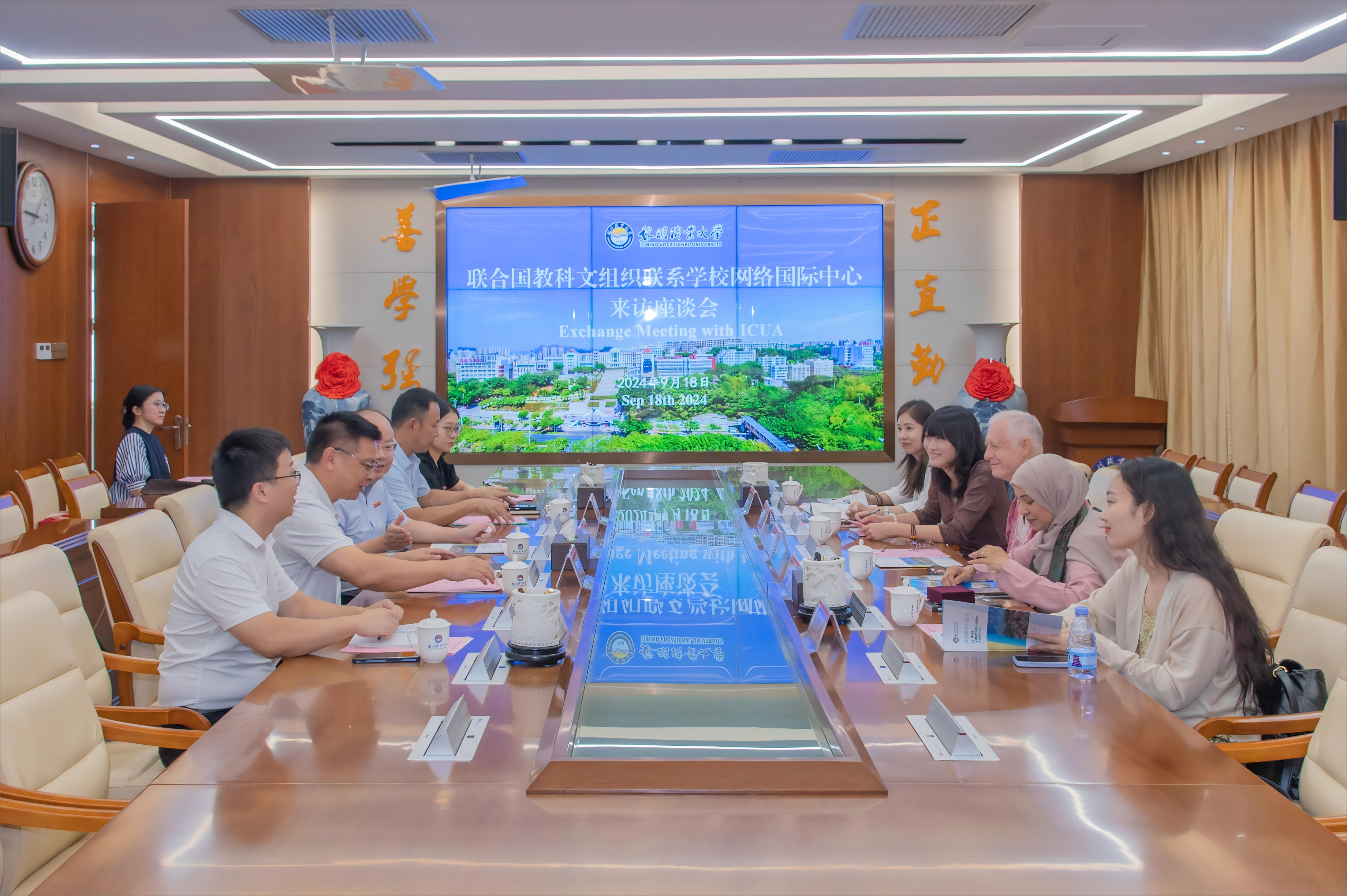 9月18日上午,联合国教科文组织联系学校网络国际中心(ICUA)理事、香港大学UNESCO比较教育教席Mark Bray,阿曼教育部ASPnet国家协调员Yousriya Sulaiman AlHarthi,ICUA执行主任张薇、可持续发展研习社主管任梦瑶、顾问王路璐等一行5人莅临黎大参访交流。校党委副书记、校长王锋,校党委副书记余大杭在慈山楼301会议室接待了来宾。通识教育学院、对外交流中心等部门相关人员参加座谈。
