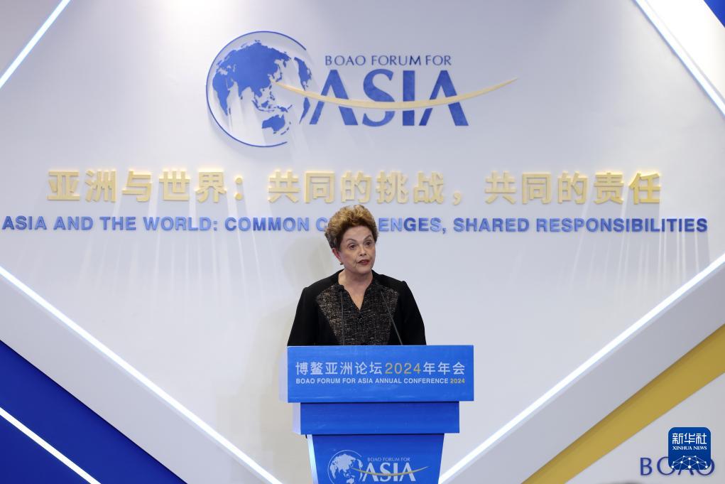 2024年3月27日,新开发银行行长迪尔玛·罗塞芙在博鳌亚洲论坛2024年年会“全球南方的兴起”分论坛上致辞。 新华社记者 唐如峰 摄
