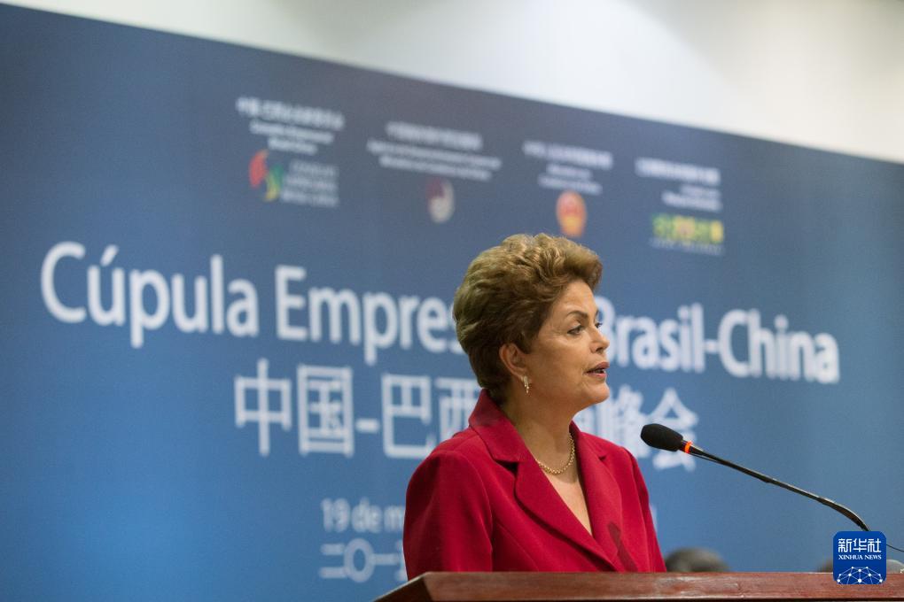 2015年5月19日,在巴西首都巴西利亚,时任巴西总统迪尔玛·罗塞芙在中国—巴西工商峰会闭幕式上致辞。 新华社记者 徐子鉴 摄