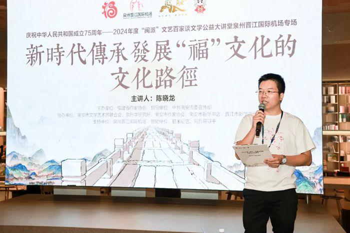 除了视觉的盛宴,还有福建省作家协会会员、南安市作家协会理事陈晓龙先生带来主题为《新时代传承发展“福”文化的文化路径》的讲座,他用深入浅出的语言诠释了新时代传承发展“福”文化的重大意义、如何通过文艺形式抓好“福”文化宣传、如何通过文创作品打造“福”文化宣传,以及如何延伸社会宣传做实“福”文化宣传,带大家深入了解“福”文化的精髓,生动有趣,现场气氛活跃。