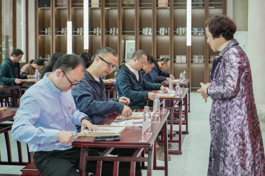 魁星书院内,福建省工艺美术大师、省级非遗代表性传承人方碧双老师,以生动、活泼的语言,声情并茂地向党员们介绍纸织画的历史与发展,在她的耐心指导下,一幅幅精美的织画作品跃然纸上,现场艺术气氛浓厚,秩序井然。