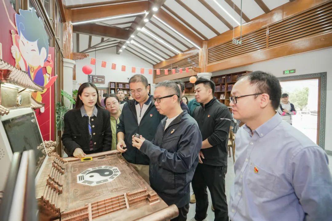 首先,全体党员在权属企业魁星岩景区运营公司讲解员的带领下,感悟魁星岩悠久的历史和深厚的文化底蕴。随后,大家共同走进魁星书院,详细了解魁星书院项目建设及运营情况;理解如何通过对在地文化的挖掘与保护,将文化灵活地融入项目,让项目更加接地气,真正扎根。
