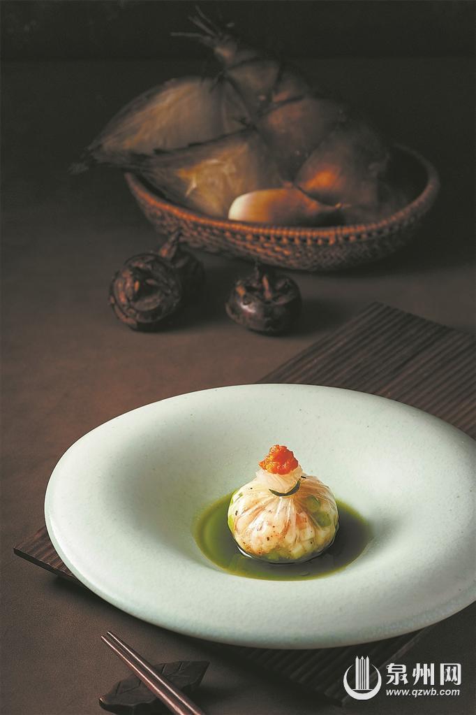 “兜”的菜肴做法在闽南很是流行,有着兜金兜银、发财行好运的美好寓意。“宋元海丝宴”中的山海兜将山珍嫩笋与海河鲜包裹在一起。山珍和海味组合烹调,各自吸取其中的精华美味,给予舌尖多层次的享受。同时,加入了“番味”胡椒,共同成就惊艳的口感。