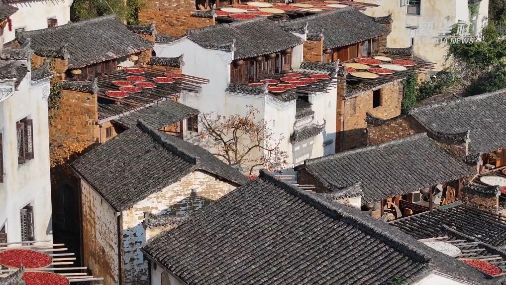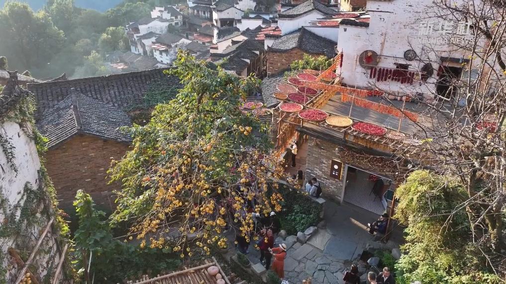果实缀满枝头时,江西省婺源县篁岭古村的晒秋农俗景观进入最美的时节,一幅幅赤橙黄绿交织的美丽图案,呈现在一栋栋徽派建筑上,让游客叹为观止。