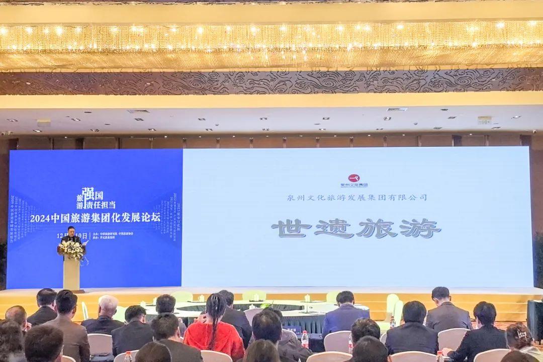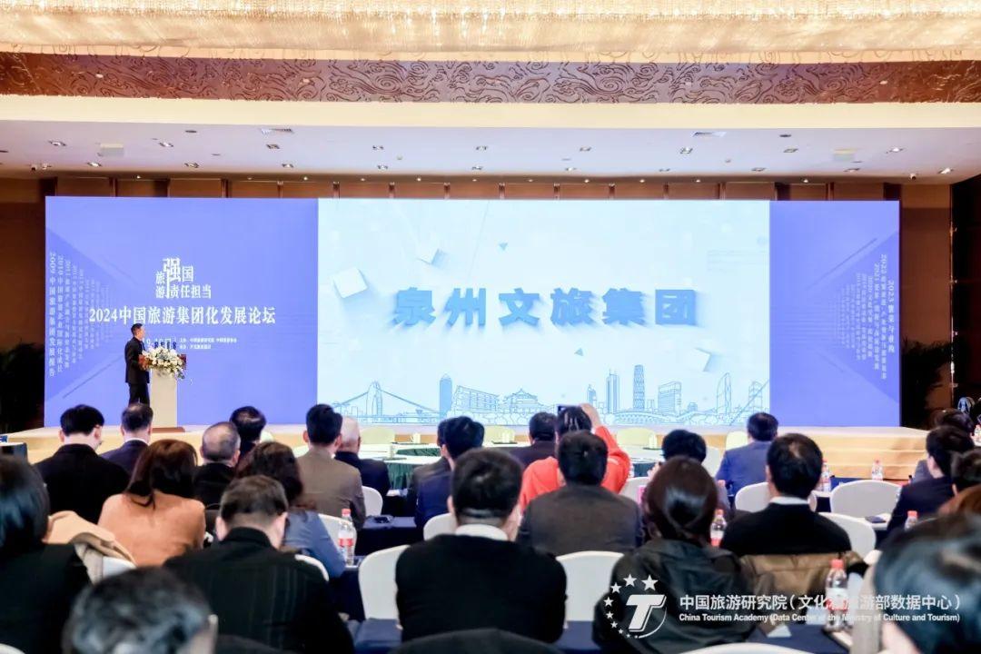 由中国旅游研究院、中国旅游协会主办的2024中国旅游集团化发展论坛于2024年12月9-10日在北京召开。本届论坛围绕“旅游强国 责任担当”主题,组织企业家代表深入探讨面向旅游新目标、新定位和新任务调整企业集团发展战略,研商旅游经济新动向,旅游产品和服务创新,扩大旅游投资等议题,论坛发布了《中国旅游集团化发展报告2024》《新赛道新实体2024中国旅游业先锋力量研究报告》,颁发“2024中国旅游业先锋力量TOP10”奖项,并公布了“2024中国旅游集团20强”名单等系列研究成果。泉州文旅集团出席论坛,并受邀参加“旅游投资与产业创新”圆桌对话。