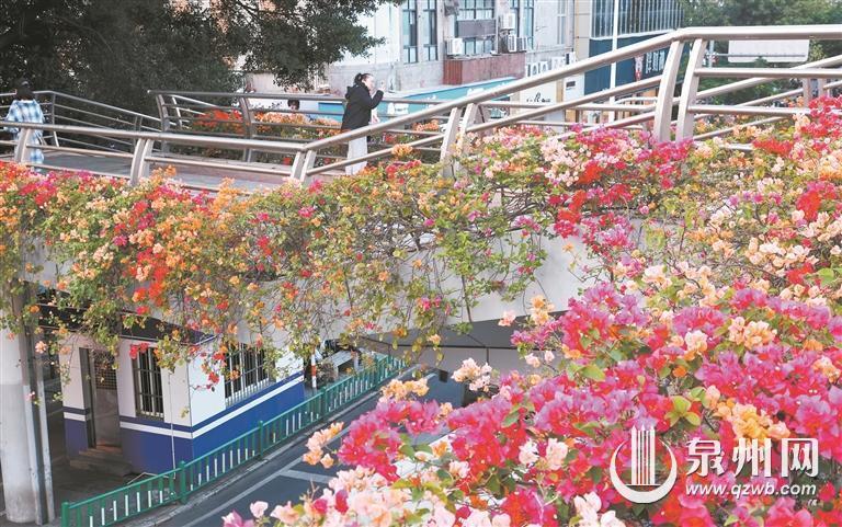 泉州还有不少“浪漫生花”的天桥美景。位于市区温陵路的“最美天桥”,被一片绚烂多彩的花朵包围,红、黄、紫、粉、白,在蓝天白云的映衬下美不胜收;市区坪山路的人行天桥上,粉紫色三角梅盛开,为天桥增添了一抹温暖的色彩!泉州的冬日依旧繁花似锦,市民路过这些天桥,纷纷驻足欣赏,享受一片片花海带来的浪漫。