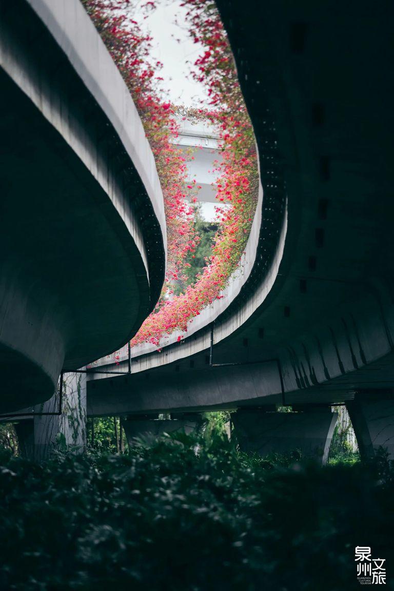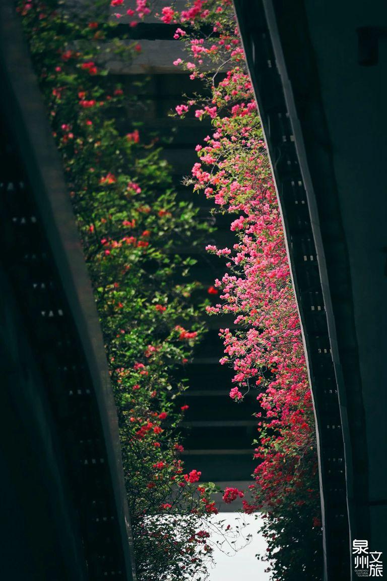 位于泉州后渚大桥东立交的箱植三角梅进入盛花期,车辆行驶在桥上,“花道”风景扑面而来;人在桥下步行道散步,抬头望去便是“花海银河”。不同的视角带来不一样的风景,令人心旷神怡!