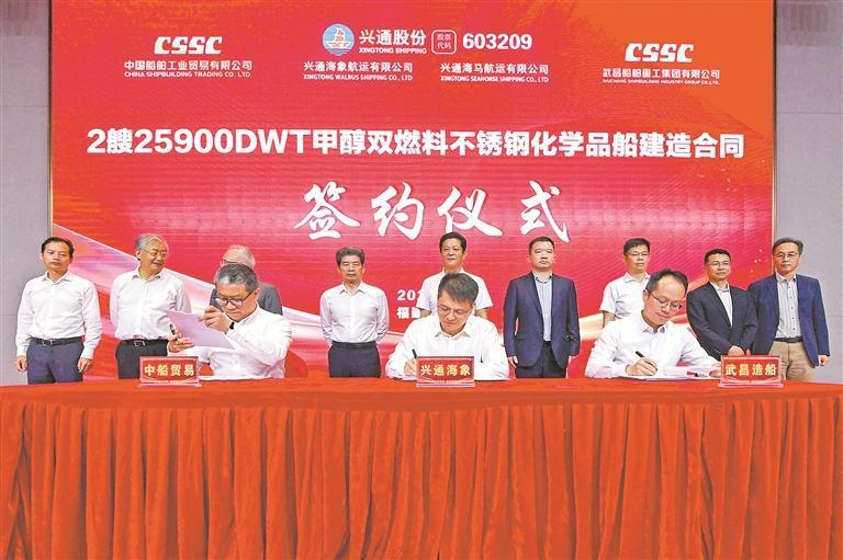 此前,兴通海运及其控股子公司兴通链发已与中国船舶工业贸易有限公司、武昌船舶重工集团有限公司签订了共6艘的25900DWT甲醇双燃料不锈钢化学品船建造合同。这些船舶将分批交付,预计最晚将于2027年6月底全部投入使用。