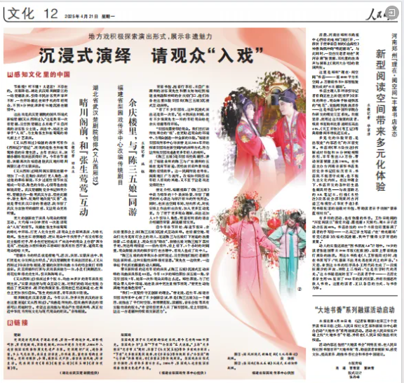 带来新鲜感的还有年轻的演员。《陈三五娘》沉浸式互动演绎的戏曲演员都是05后。今年18岁的郑怡萍扮演五娘一角,学习梨园戏7年,她第一次和观众离得这么近。郑怡萍说,为了把观众带入戏中情境,她在表演中更注重细节展现,“要更生动饱满地传递角色情绪”。