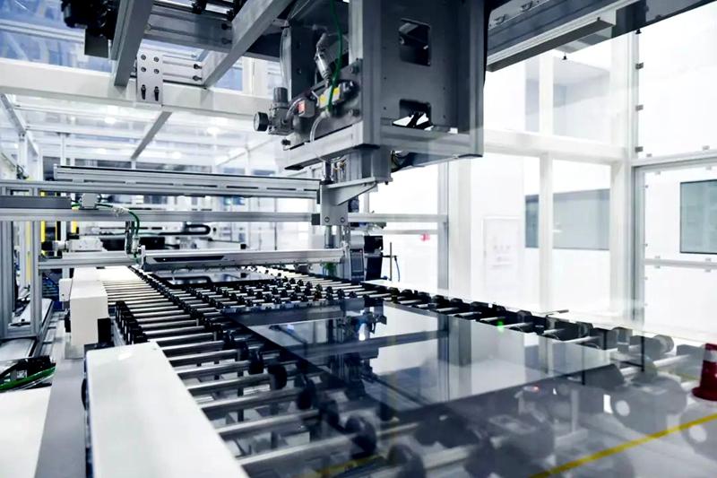 一张张玻璃基板的“变身之旅”也自动上演:机器人自动解包玻璃基板并上传产品身份信息、AOI(自动光学检测)无死角检查产品质量、玻璃基板顺着轨道稳稳送至库位……各个生产环节紧密合作,高效运转,直到显示面板出货。