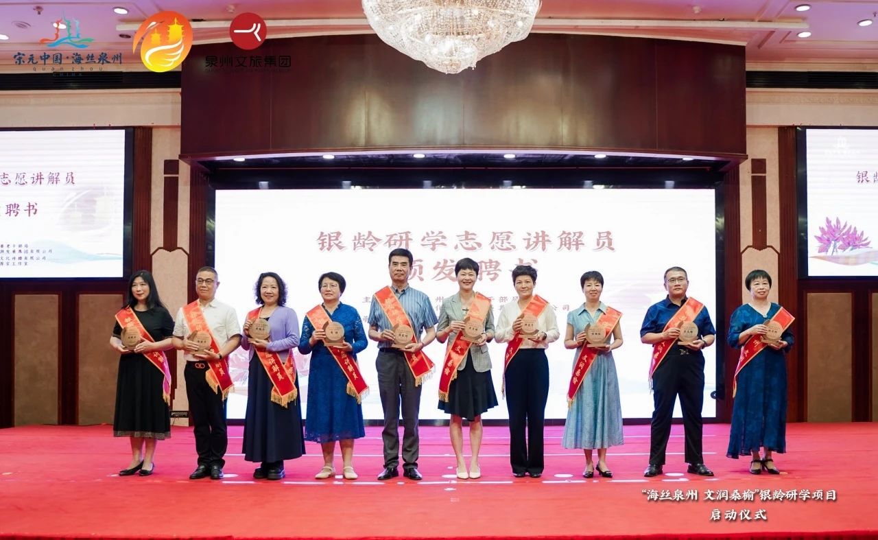 随后,市委组织部副部长、老干部局局长陈晓蓉,泉州文旅集团党委副书记、董事廖雷生为首批“海丝泉州·文润桑榆”银龄研学志愿讲解员颁发聘书。