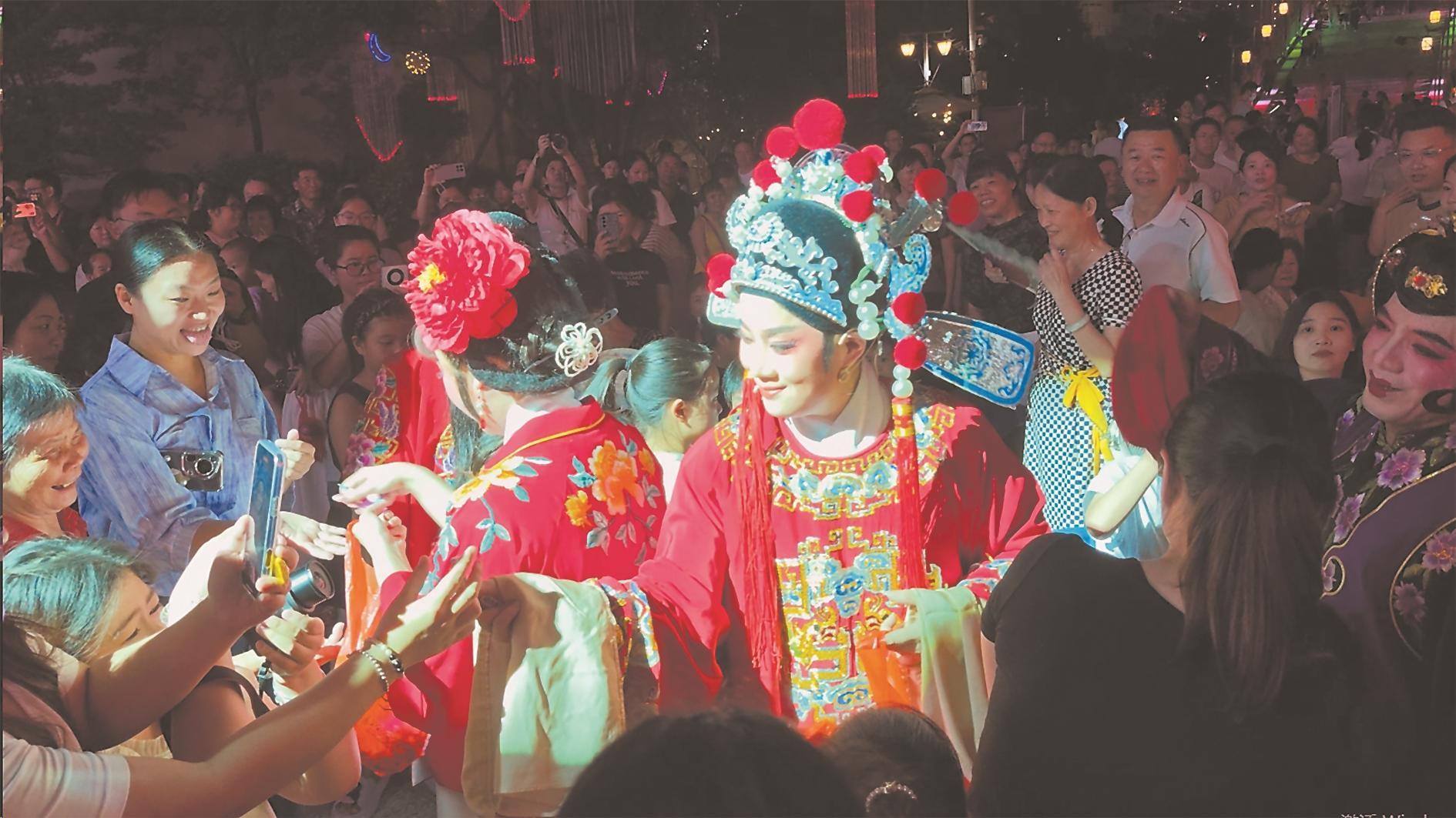 在漳州古城、闽南水乡等景点景区,“周末戏相逢”公益演出精彩亮相。歌仔戏、木偶表演、闽南语歌曲演唱、乐器独奏、锦歌、越剧等演出轮番上演,台上锣鼓铿锵、唱腔婉转、剧情跌宕,台下观众不时掌声雷动,“田园都市、文化名城”的幸福底色越绘越浓。