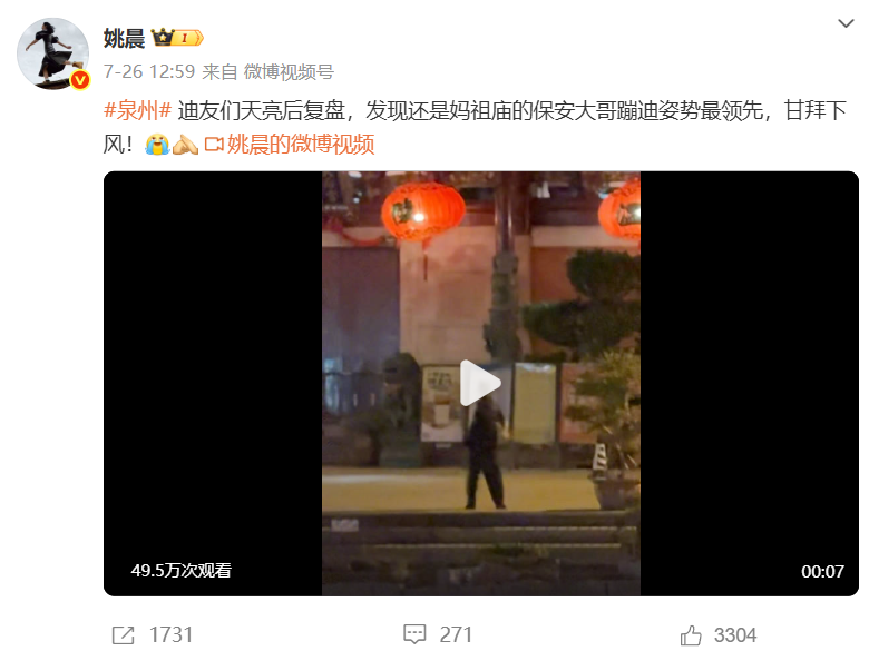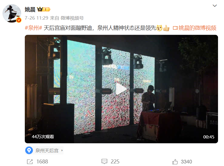 姚晨发微博,分享城南夜生活乐趣。