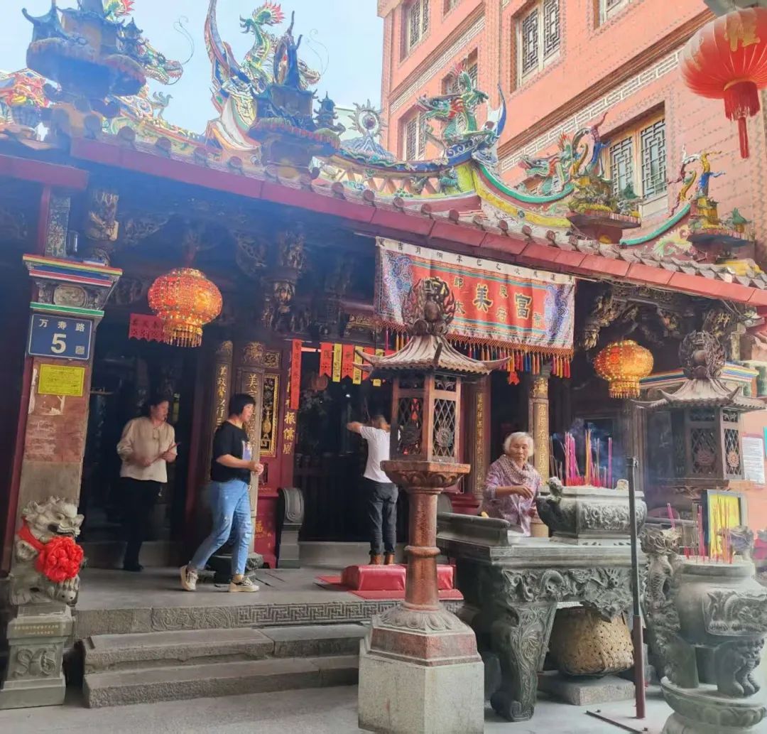 除了两处世界遗产点,万寿路上,历史的印记俯拾皆是:路南段往聚宝街方向还有水巷尾的门牌,保存着旧时人们装水送到码头卖给船家的古渡记忆;路南的泉郡富美宫是世界级非遗“送王船”习俗的重要发源地之一,始建于明代正德年间(1506年-1521年),主祀西汉太子太傅萧望之,被称为“泉郡王爷庙总摄司”,分炉遍及很广,其中仅台湾就多达2000余处;富美宫附近便是富美古渡的遗址,宋元时期涨海声中万国商的场景似乎还在眼前……