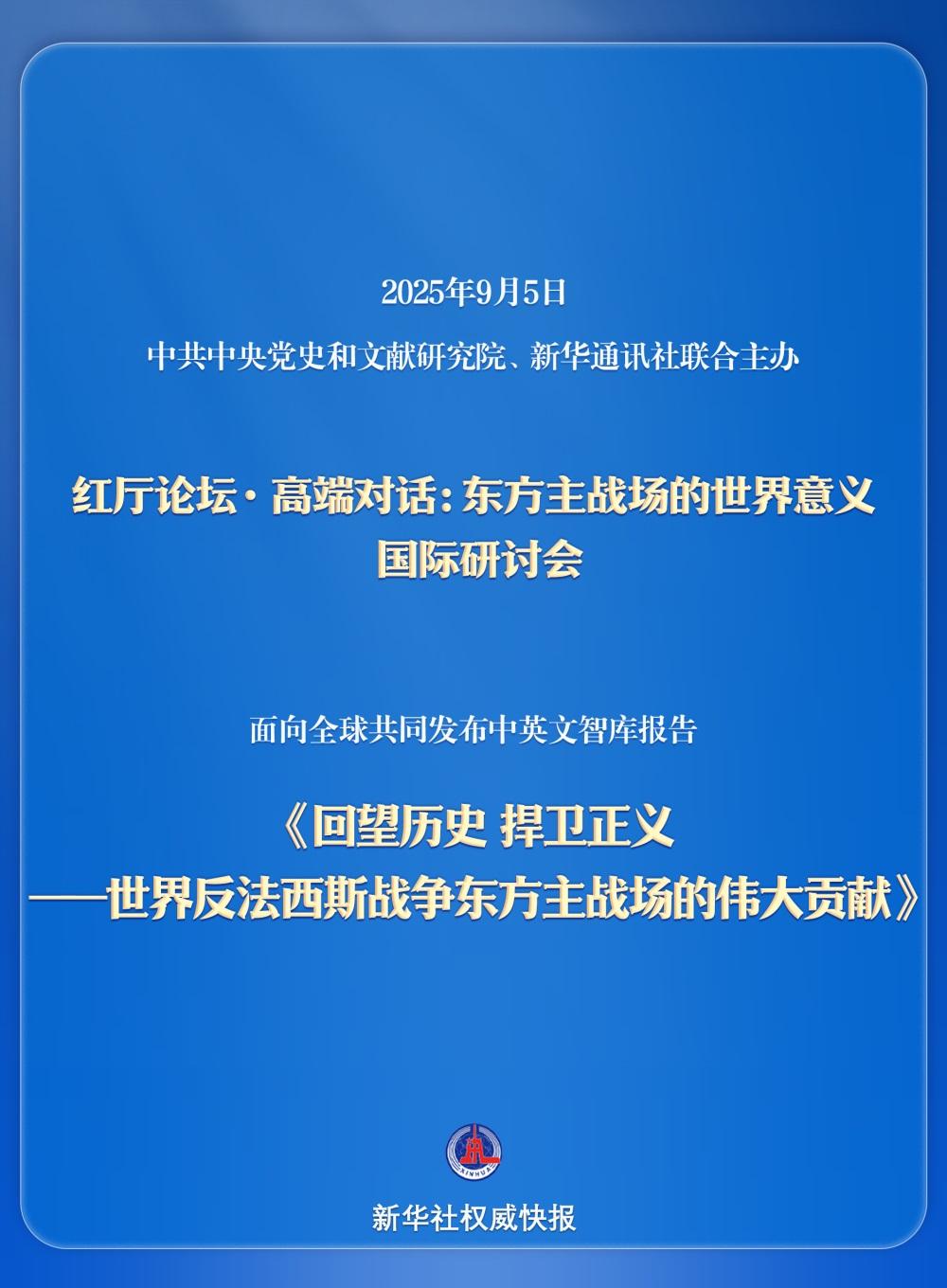 9月5日,在纪念中国人民抗日战争暨世界反法西斯战争胜利80周年之际,中共中央党史和文献研究院、新华通讯社在联合主办的“红厅论坛·高端对话:东方主战场的世界意义”国际研讨会上,联合发布《回望历史 捍卫正义——世界反法西斯战争东方主战场的伟大贡献》中英文智库报告。报告全面系统阐述了中国人民抗日战争在世界反法西斯战争中的历史地位和重大贡献。