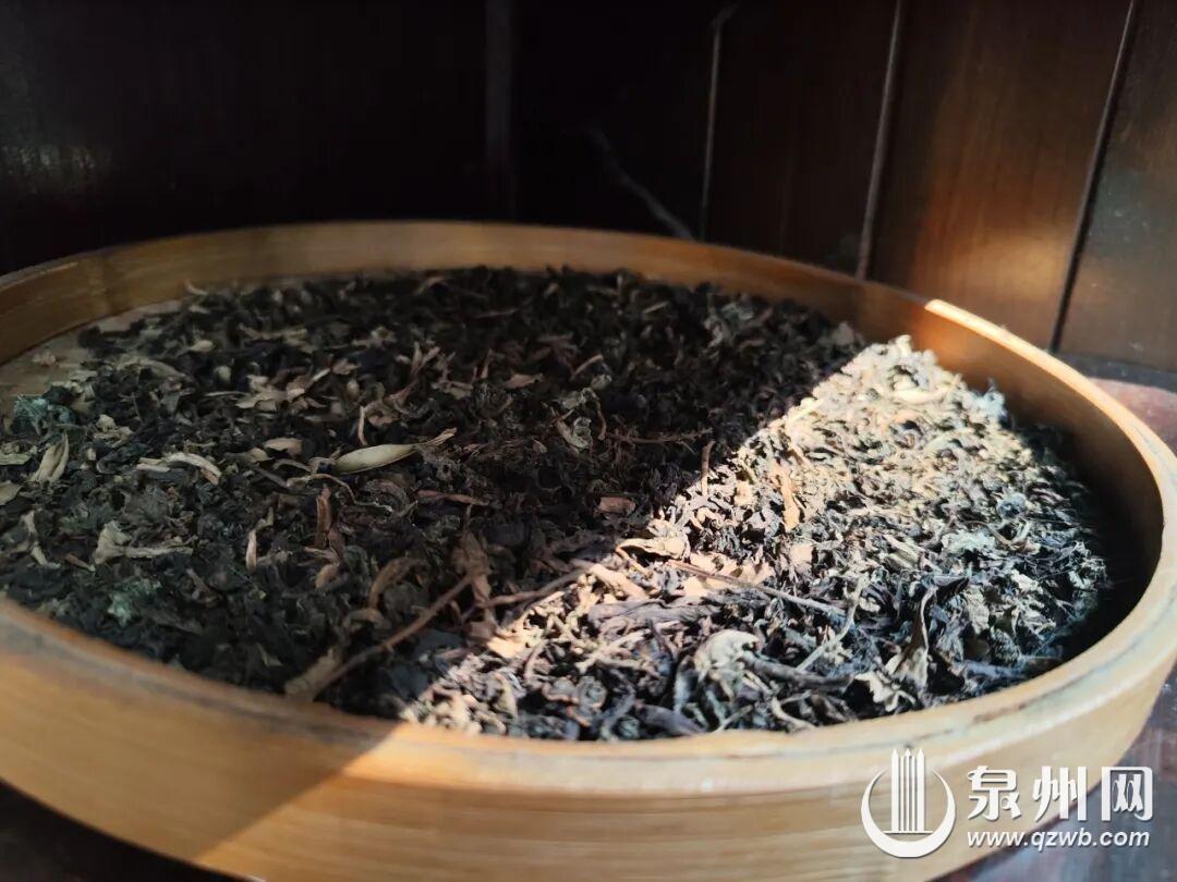 茶铺门口晒茶,香气细微。