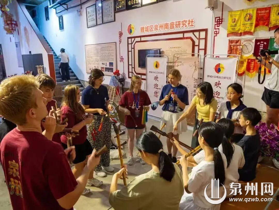 今年8月,这里还迎来一批特别的客人:泉州七中MULTI2025国际青少年夏令营营员,其中德国奥博豪森市师生们近距离感受琵琶、洞箫、二弦、三弦、拍板等乐器的演奏,学唱南音《直入花园》。防洪堤与中西合璧洋楼交相辉映,南音悠扬,仿佛潮起潮落的宋元之声,诉说着古老的故事……