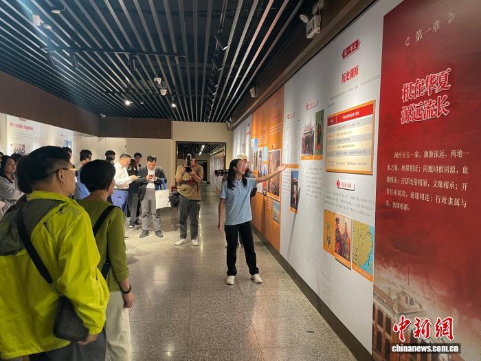 9月20日,纪念中国人民抗日战争暨世界反法西斯战争胜利80周年和台湾光复80周年主题图片展在武汉展出。 图为台胞代表、港澳台大学生代表等参观展览。 记者 马芙蓉 摄