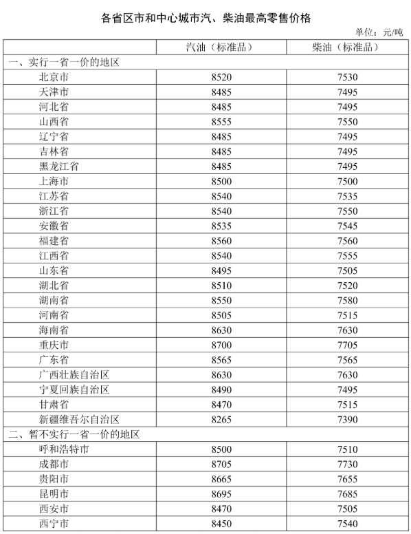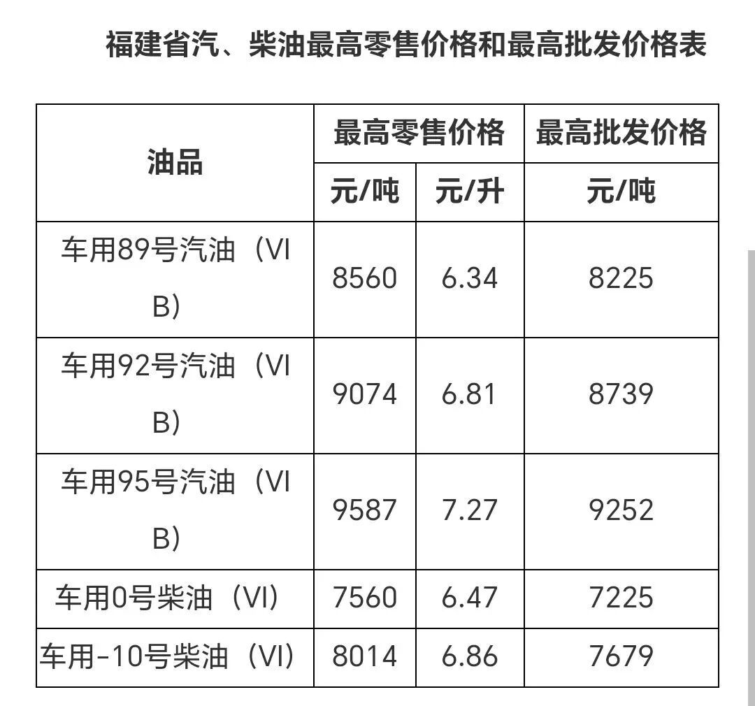 调整后,福建92号汽油为6.81元/升,95号汽油为7.27元/升,0号柴油为6.47元/升。