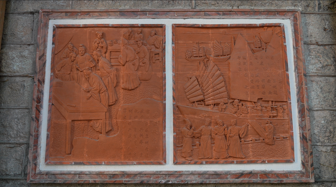 往前走,是以红砖白石为底色的孝廉文化主题墙,“忠孝廉节”四个大字由泉州砖雕工艺制作而成,十分醒目。沿着墙面漫步,就像打开了一本泉州先贤廉洁故事集:留从效“环城遍植刺桐”“招来番商”的作为,留正“文韬武略”“两袖清风”的风骨,故居位于三朝巷隔壁古榕巷的清进士许邦光“正直不阿”“治狱公正”的正气;故居位于西街西段的明代朱鉴“孝感动天”的德行……这些故事都被闽南传统的砖雕、石雕工艺“变”得栩栩如生。