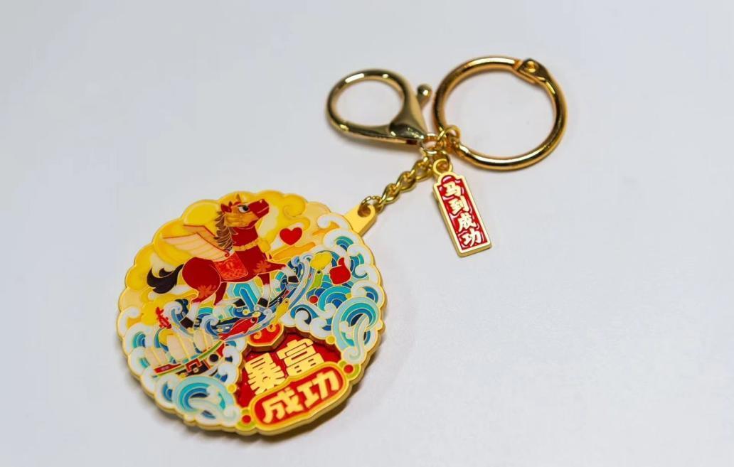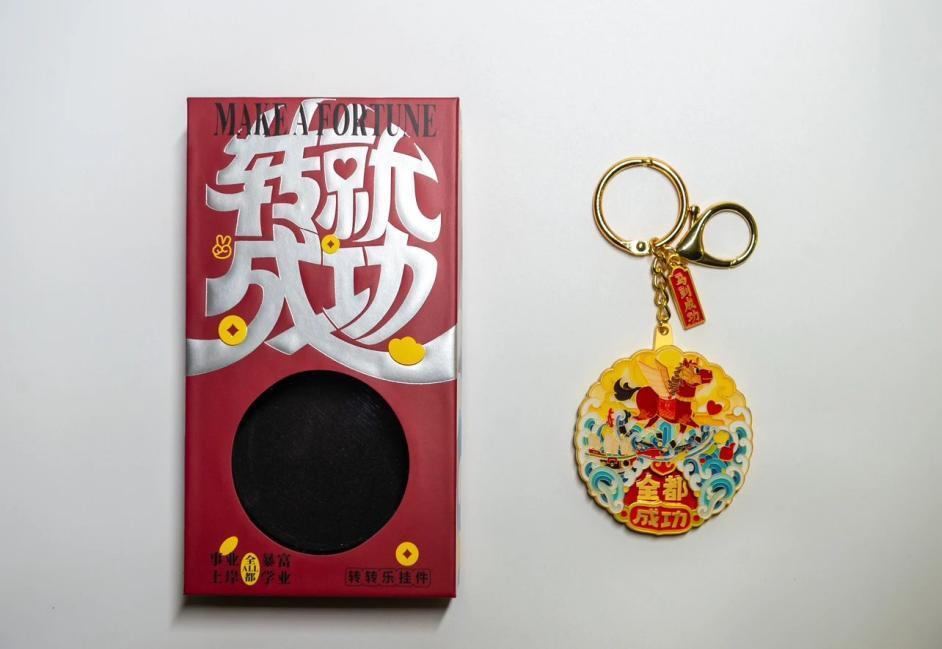“召召”通身枣红色,体躯雄伟,白顶门,四只白蹄子,褐鬃乌尾,跑起路来四蹄翻花,是根据《史事丛谈》所记载的郑成功最喜爱的战马“番神驹”设计。转转乐寄予美好的祝福——“全都成功、暴富成功、上岸成功、学业成功、事业成功。”其可作为钥匙挂件、包包挂件,随身携带。