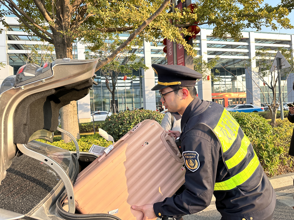在机场帮助旅客搬运大件行李(图片来源:泉州市交通运输综合执法支队)