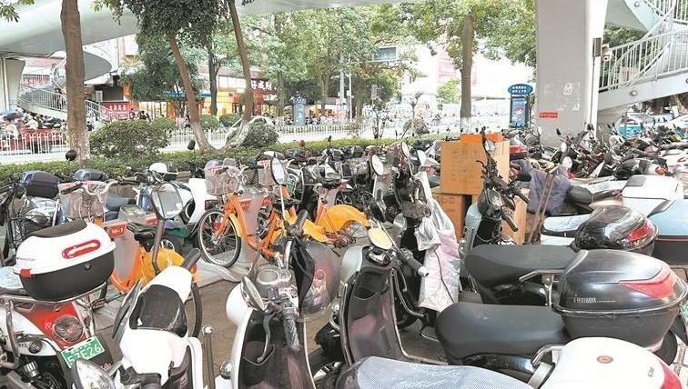 部分景点和路段电动车乱停放 影响游客出行
